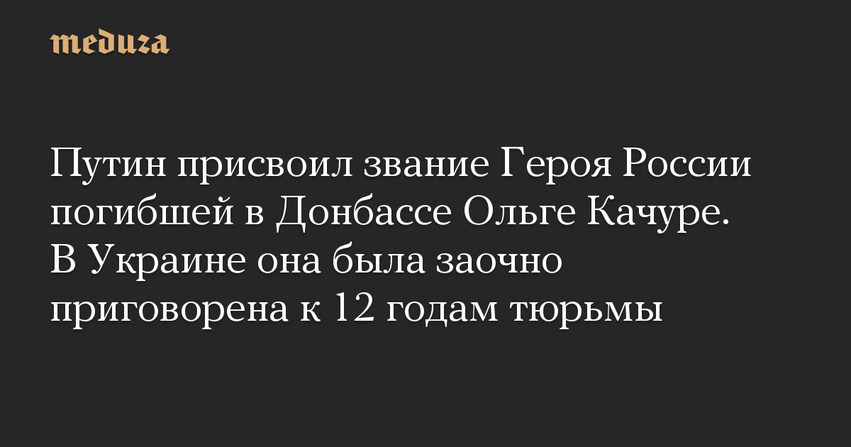 Путин присвоил звание Героя России погибшей в Донбассе Ольге Качуре. В Украине она была заочно приговорена к 12 годам тюрьмы