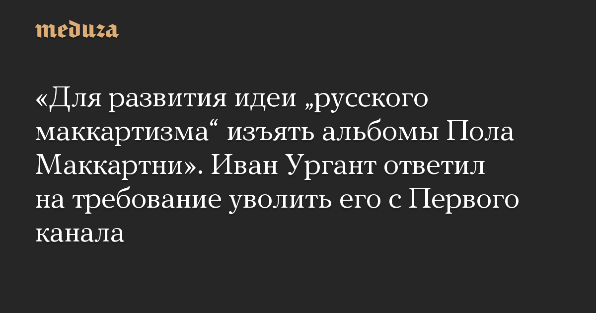 «Для развития идеи „русского маккартизма“ изъять альбомы Пола Маккартни». Иван Ургант ответил на требование уволить его с Первого канала
