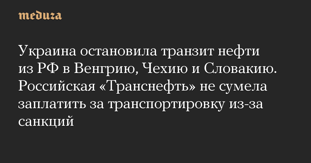Украина остановила транзит нефти из РФ в Венгрию, Чехию и Словакию. Российская «Транснефть» не сумела заплатить за транспортировку из-за санкций