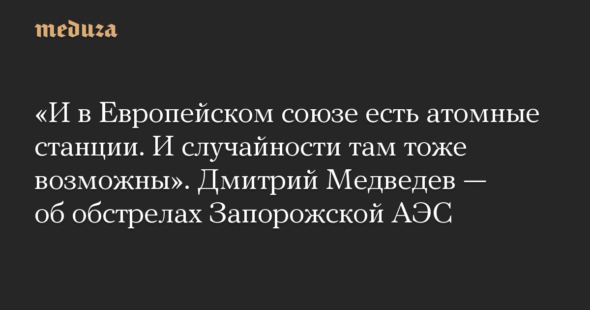 «И в Европейском союзе есть атомные станции. И случайности там тоже возможны». Дмитрий Медведев — об обстрелах Запорожской АЭС