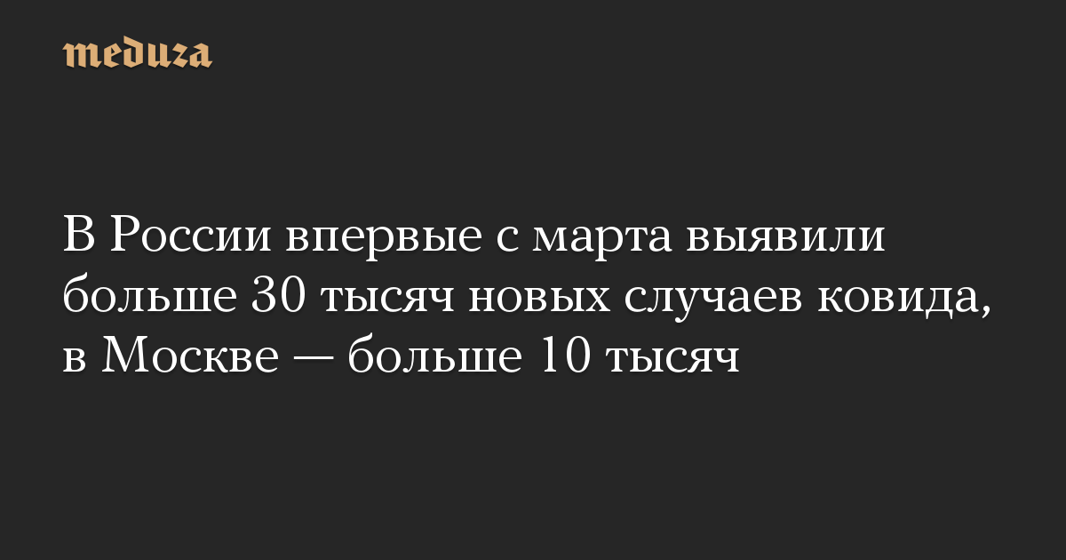 В России впервые с марта выявили больше 30 тысяч новых случаев ковида, в Москве — больше 10 тысяч