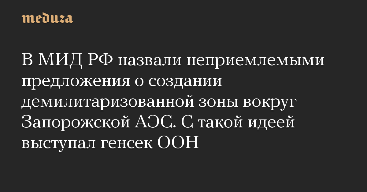 В МИД РФ назвали неприемлемыми предложения о создании демилитаризованной зоны вокруг Запорожской АЭС. С такой идеей выступал генсек ООН