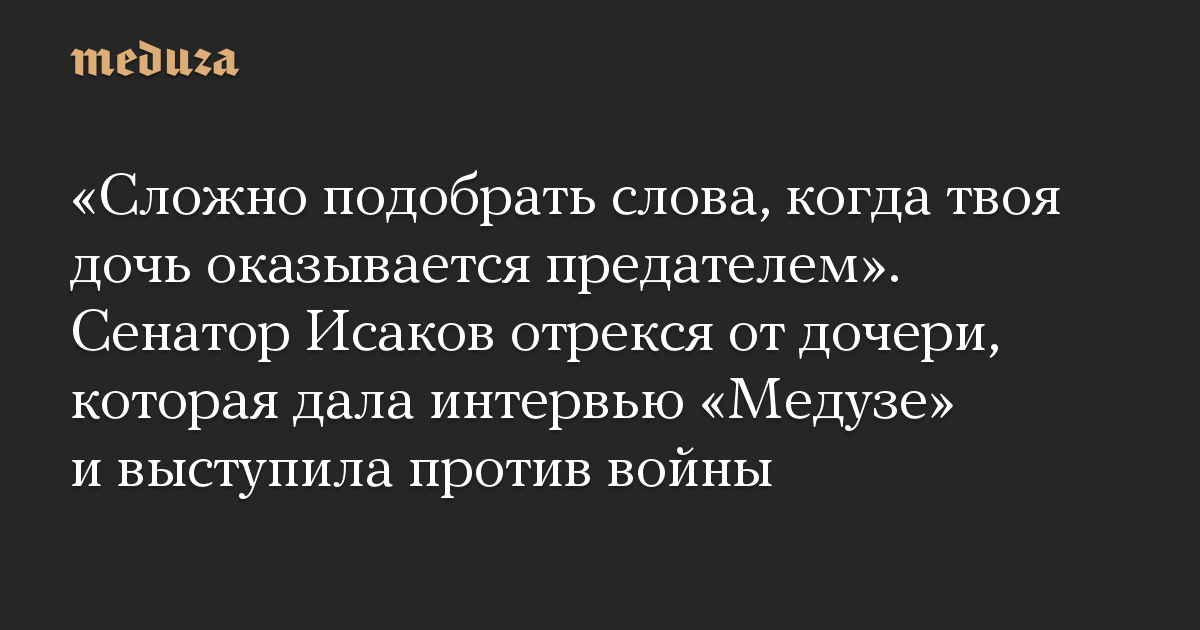 «Сложно подобрать слова, когда твоя дочь оказывается предателем». Сенатор Исаков отрекся от дочери, которая дала интервью «Медузе» и выступила против войны