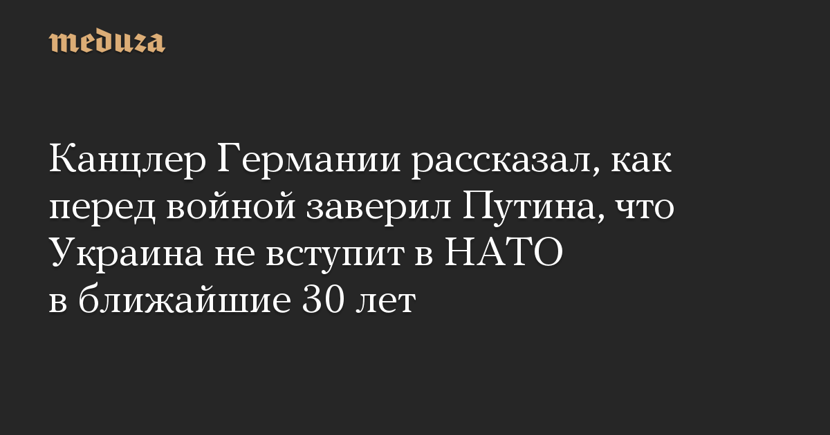 Канцлер Германии рассказал, как перед войной заверил Путина, что Украина не вступит в НАТО в ближайшие 30 лет