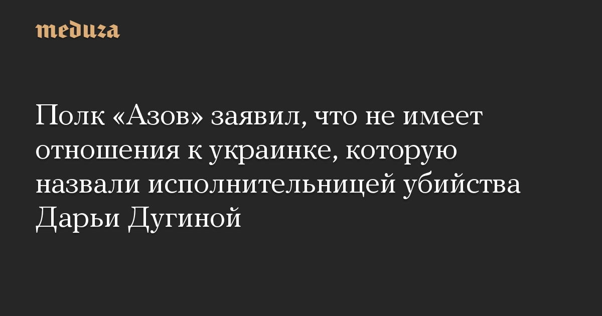 Наталья Вовк, которую Федеральная служба безопасности (ФСБ) назвала подозреваемой в убийстве Дарьи Дугиной, не связана с украинским полком «Азов». Об этом сообщается в телеграм-канале полка.
