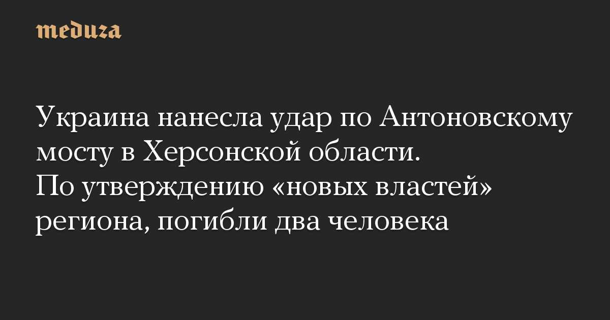 Украина нанесла удар по Антоновскому мосту в Херсонской области. По утверждению «новых властей» региона, погибли два человека