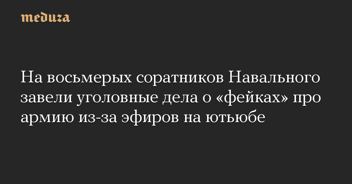 На восьмерых соратников Навального завели уголовные дела о «фейках» про армию из-за эфиров на ютьюбе