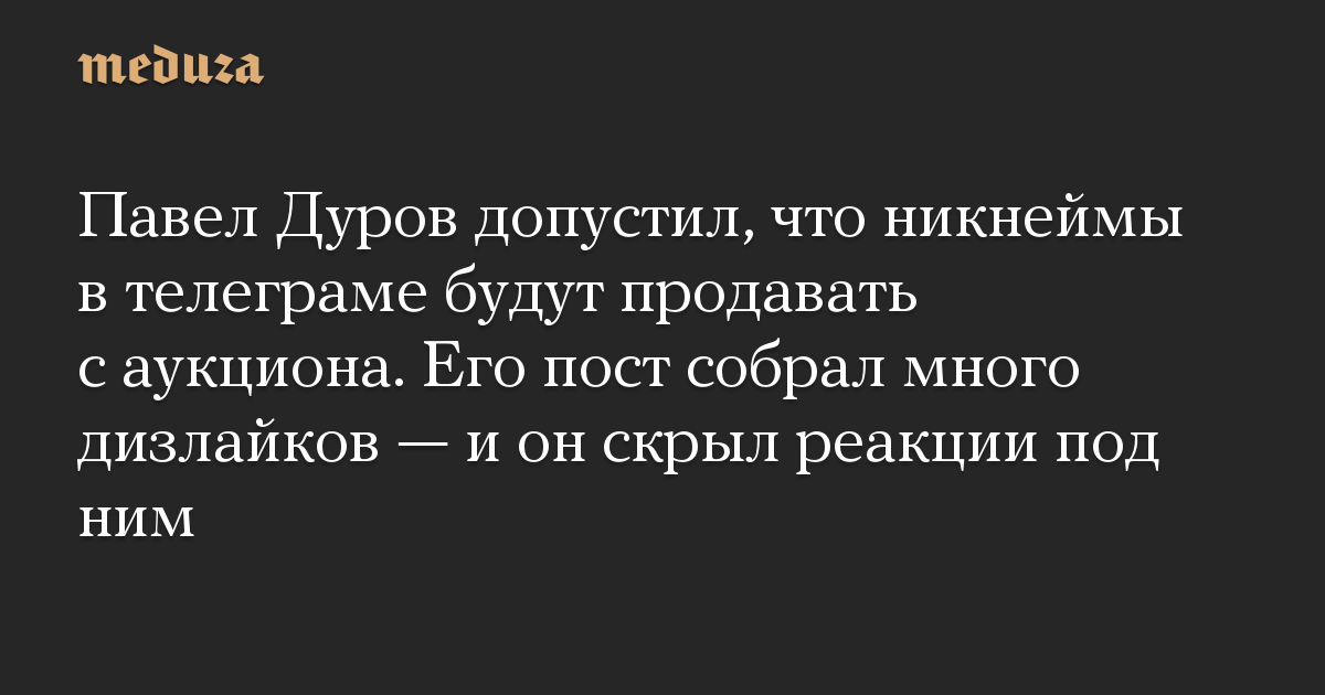 Павел Дуров допустил, что никнеймы в телеграме будут продавать с аукциона. Его пост собрал много дизлайков — и он скрыл реакции под ним