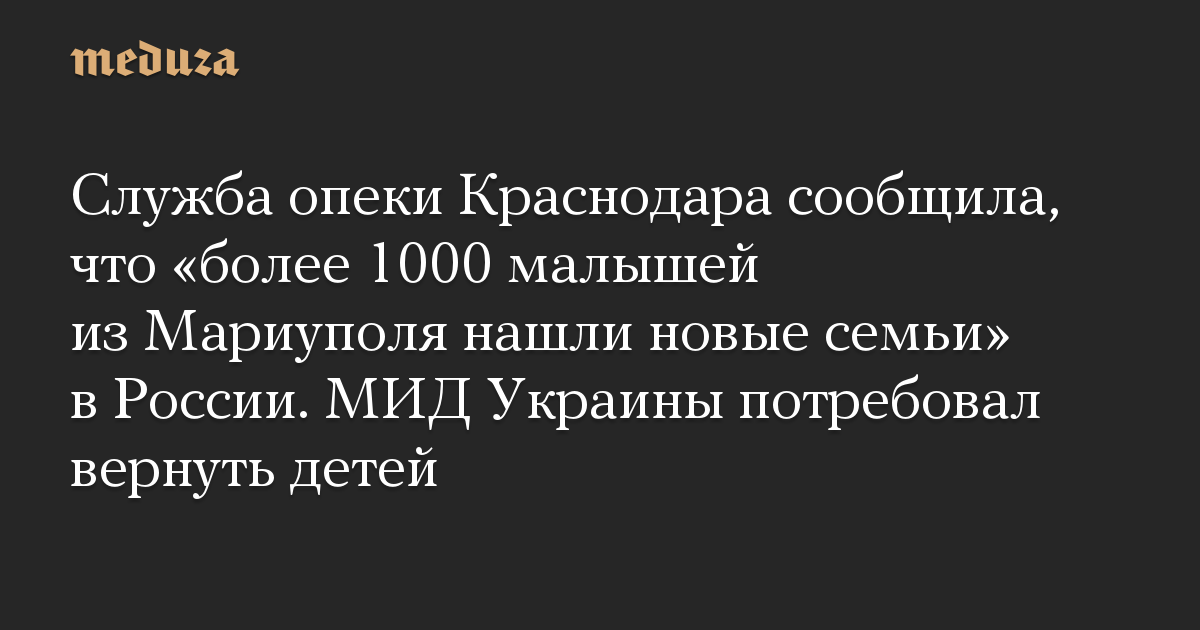 Служба опеки Краснодара сообщила, что «более 1000 малышей из Мариуполя нашли новые семьи» в России. МИД Украины потребовал вернуть детей