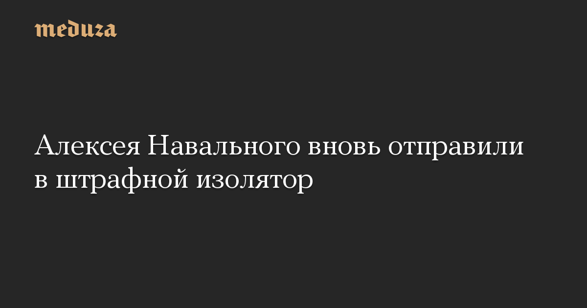 Алексея Навального во второй раз отправили в штрафной изолятор (ШИЗО) в колонии строгого режима № 6 в Мелехово Владимирской области.