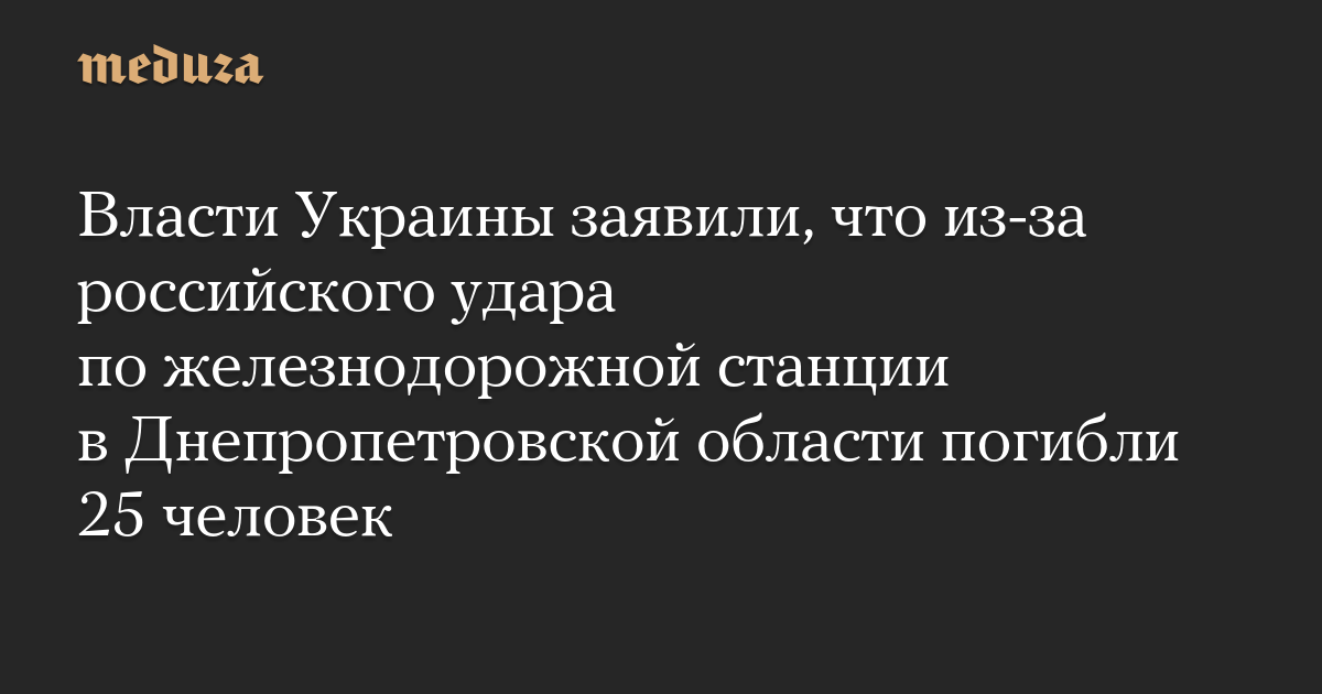 Власти Украины заявили, что из-за российского удара по железнодорожной станции в Днепропетровской области погибли 25 человек