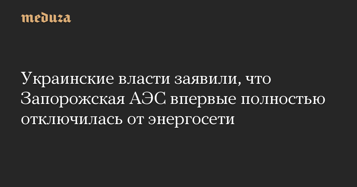 Украинские власти заявили, что Запорожская АЭС впервые полностью отключилась от энергосети