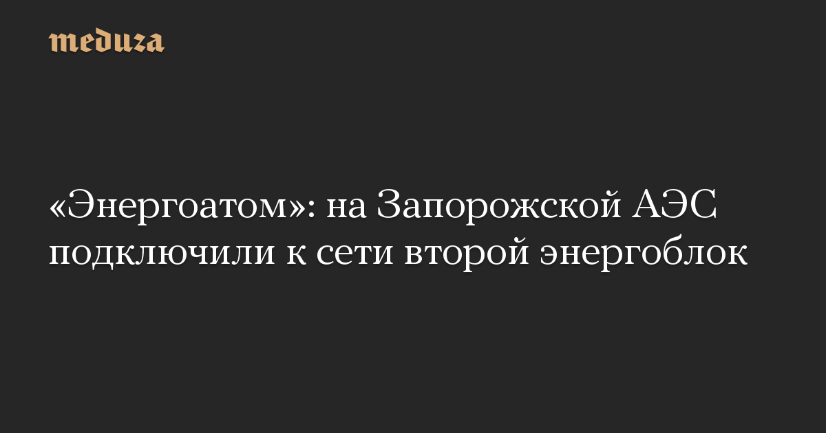 Украинское предприятие «Энергоатом» заявило вечером 26 августа, что еще один энергоблок Запорожской АЭС был подключен к сети после отключения 25 августа.