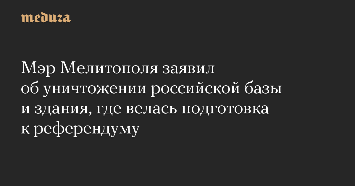 Мэр Мелитополя заявил об уничтожении российской базы и здания, где велась подготовка к референдуму