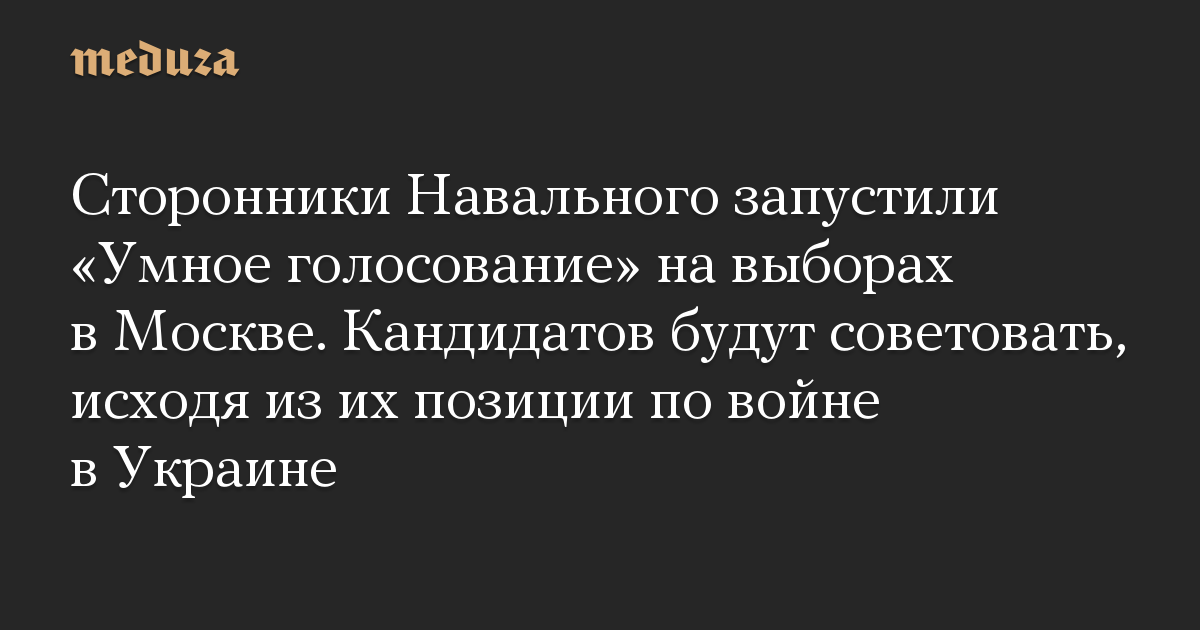 Сторонники Навального запустили «Умное голосование» на выборах в Москве. Кандидатов будут советовать, исходя из их позиции по войне в Украине