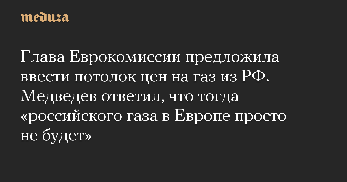 Глава Еврокомиссии предложила ввести потолок цен на газ из РФ. Медведев ответил, что тогда «российского газа в Европе просто не будет»