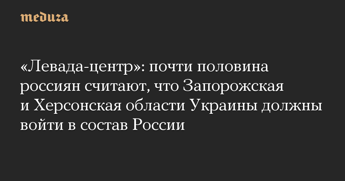 «Левада-центр»: почти половина россиян считают, что Запорожская и Херсонская области Украины должны войти в состав России