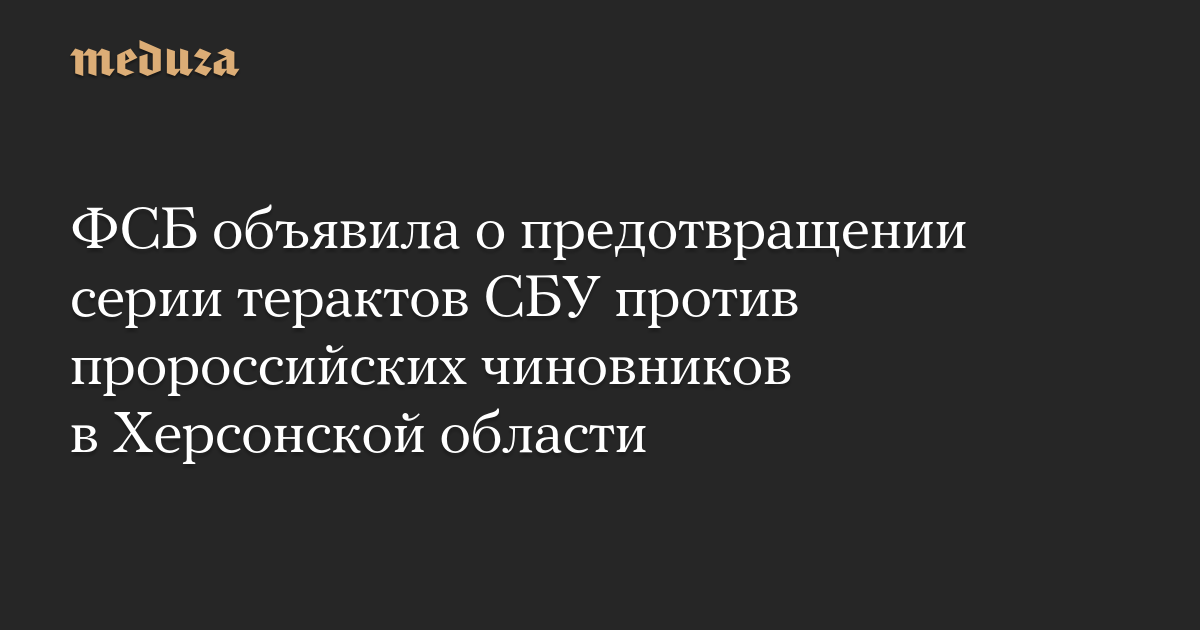 Федеральная служба безопасности РФ утверждает, что «в ходе проведения оперативной игры» пресекла серию терактов, которые готовила Служба безопасности Украины «в отношении должностных лиц военно-гражданской администрации Херсонской области Украины и членов правительства Республики Крым».