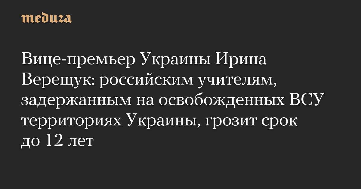 Вице-премьер Украины Ирина Верещук: российским учителям, задержанным на освобожденных ВСУ территориях Украины, грозит срок до 12 лет