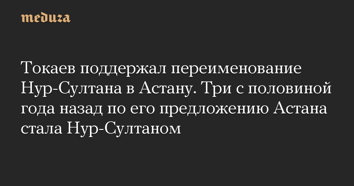 Токаев поддержал переименование Нур-Султана в Астану. Три с половиной года назад по его предложению Астана стала Нур-Султаном