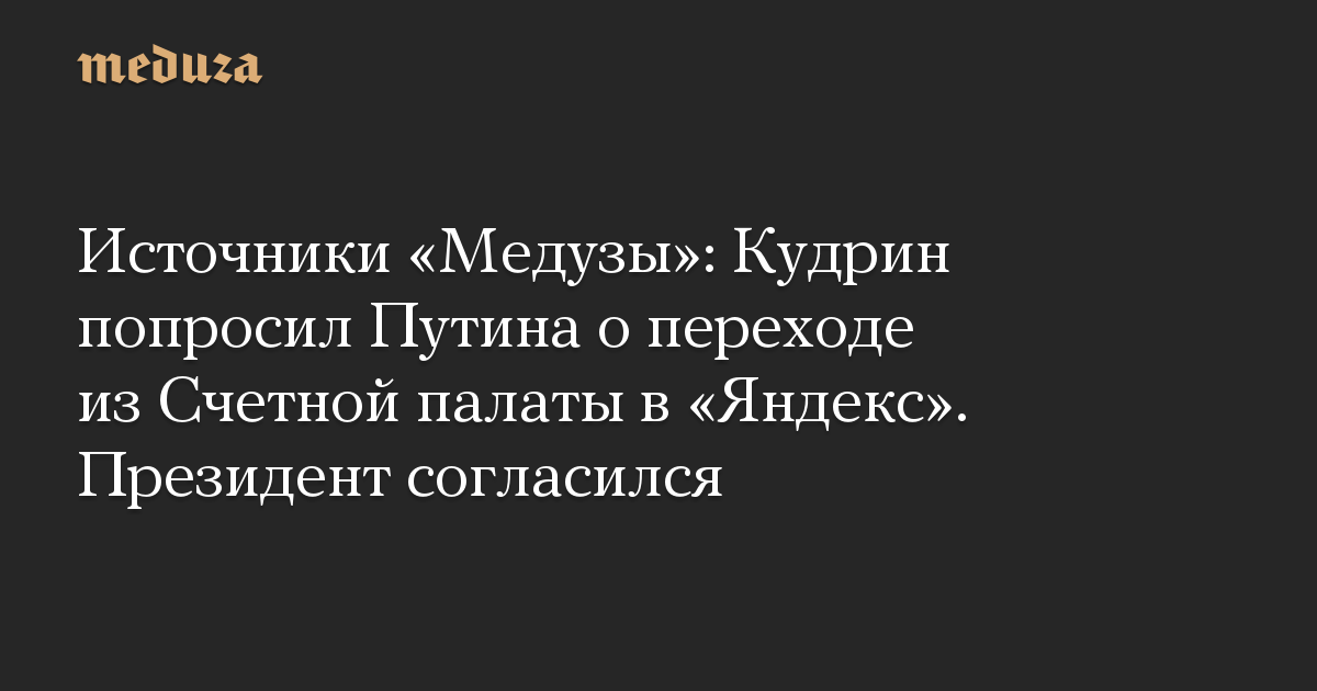 Источники «Медузы»: Кудрин попросил Путина о переходе из Счетной палаты в «Яндекс». Президент согласился