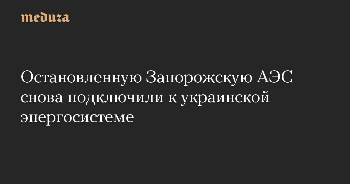 Запорожская атомная электростанция в оккупированном городе Энергодар снова получает электроэнергию из украинской энергосистемы, сообщило Международное агентство по атомной энергии (МАГАТЭ).