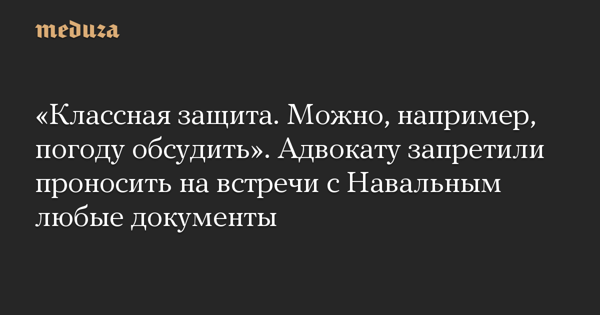«Классная защита. Можно, например, погоду обсудить». Адвокату запретили проносить на встречи с Навальным любые документы