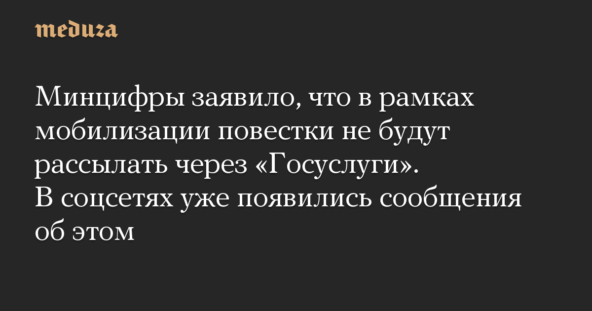 Минцифры заявило, что в рамках мобилизации повестки не будут рассылать через «Госуслуги». В соцсетях уже появились сообщения об этом