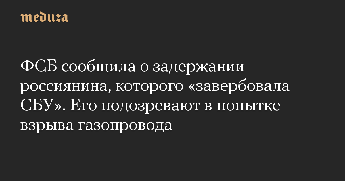 ФСБ сообщила о задержании россиянина, которого «завербовала СБУ». Его подозревают в попытке взрыва газопровода