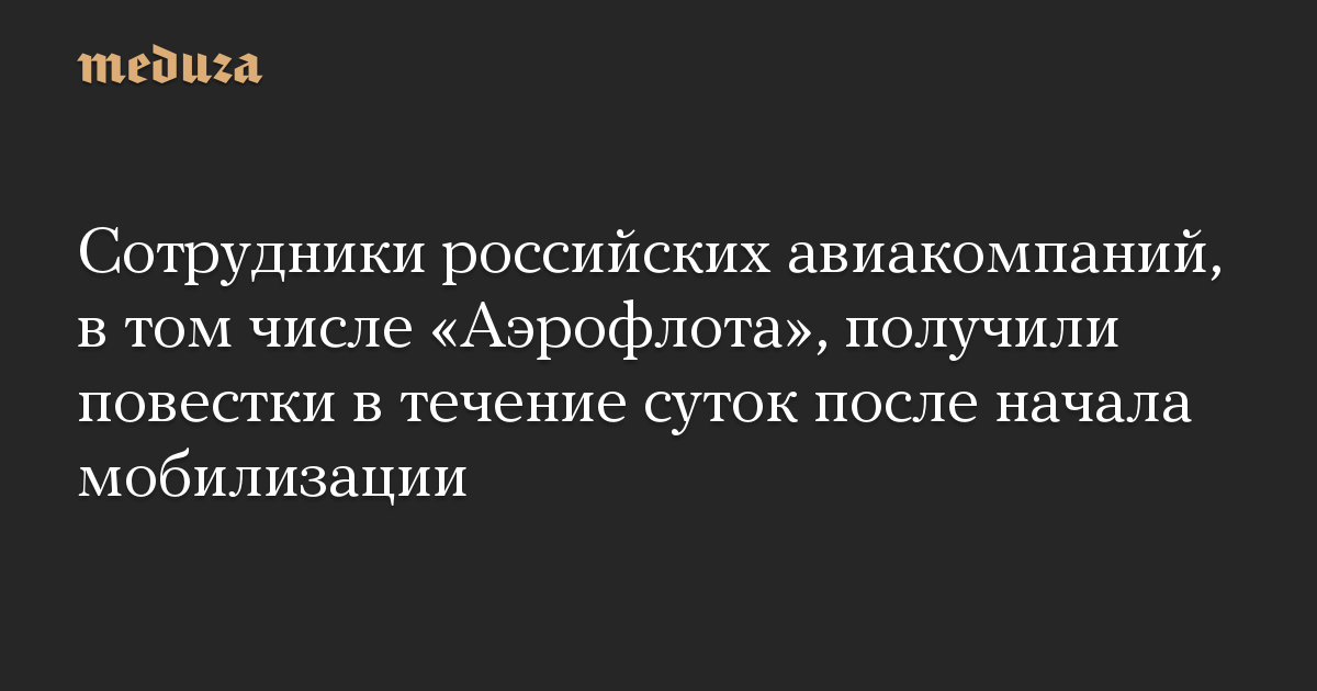Сотрудники российских авиакомпаний, в том числе «Аэрофлота», получили повестки в течение суток после начала мобилизации