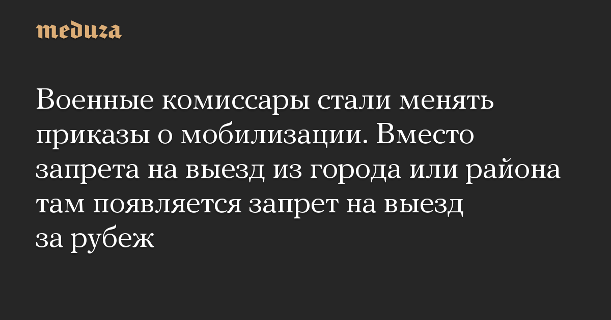 Военные комиссары стали менять приказы о мобилизации. Вместо запрета на выезд из города или района там появляется запрет на выезд за рубеж