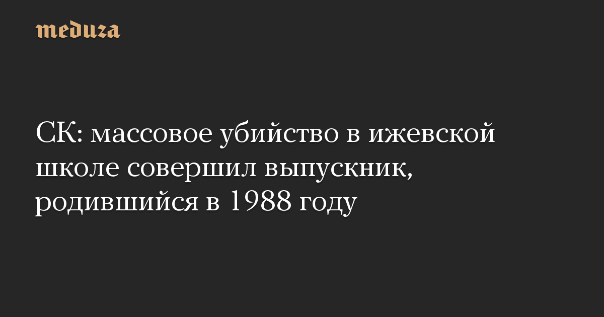 СК: массовое убийство в ижевской школе совершил выпускник, родившийся в 1988 году