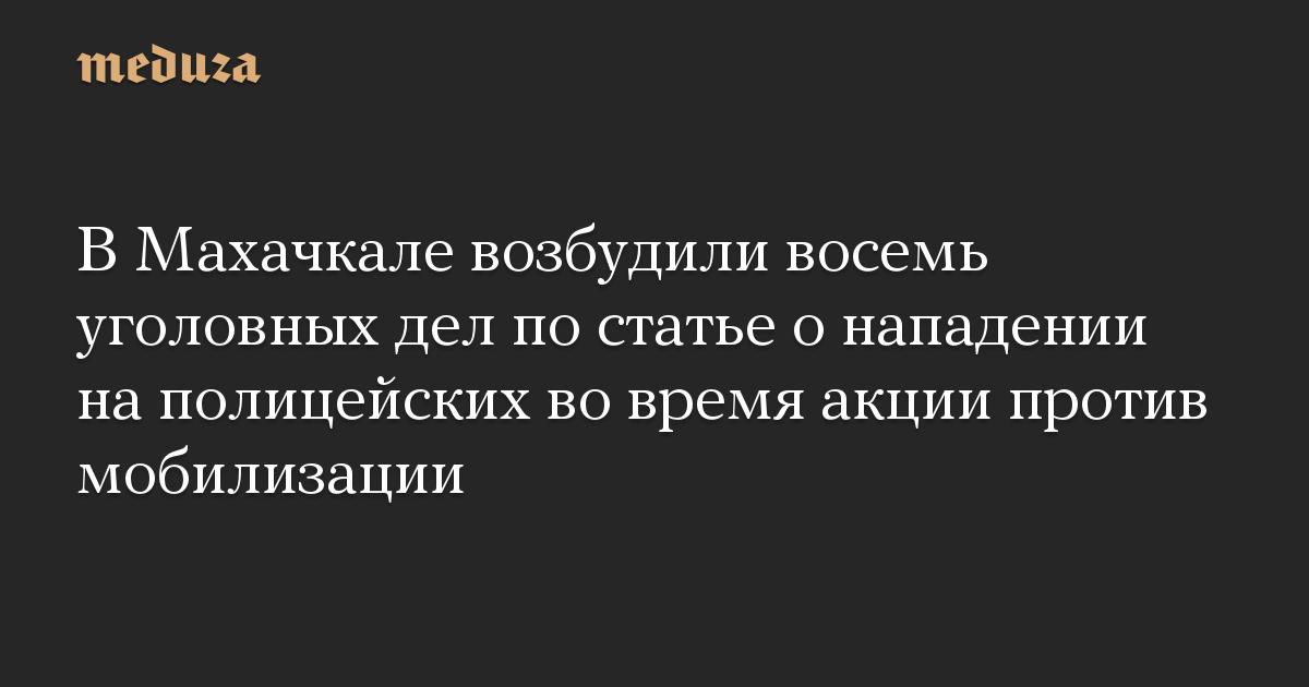 В Махачкале задержали около 120 человек за участие в акции протеста против мобилизации, которая прошла 25 сентября. По данным «Кавказ.Реалии», в отношении протестующих были составлены 46 протоколов об участии в несанкционированном митинге, а также возбуждены восемь уголовных дел по статье о нападении на полицейских.