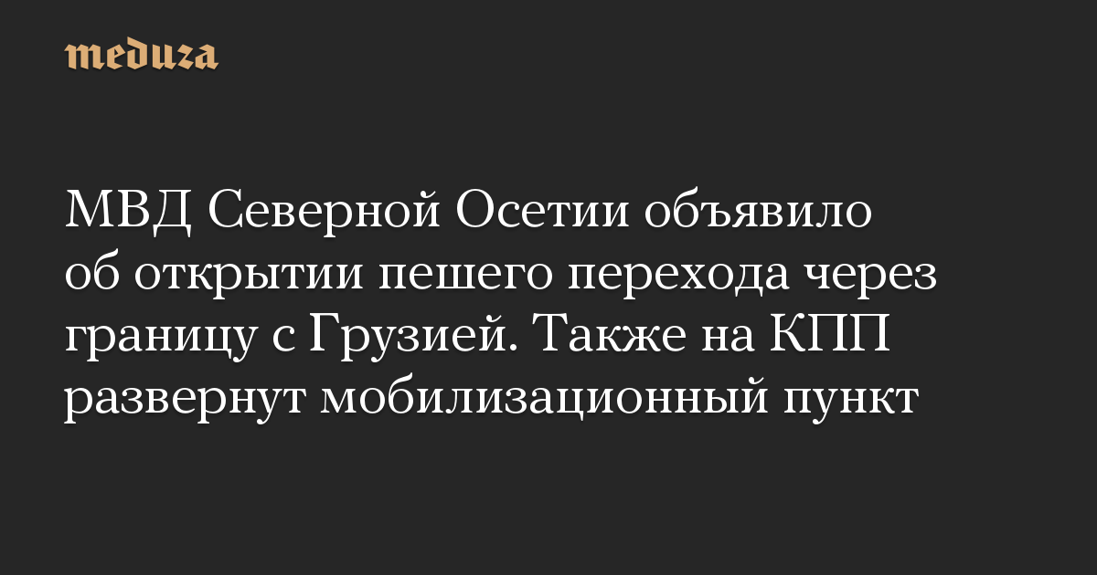 МВД Северной Осетии объявило об открытии пешего перехода через границу с Грузией. Также на КПП развернут мобилизационный пункт