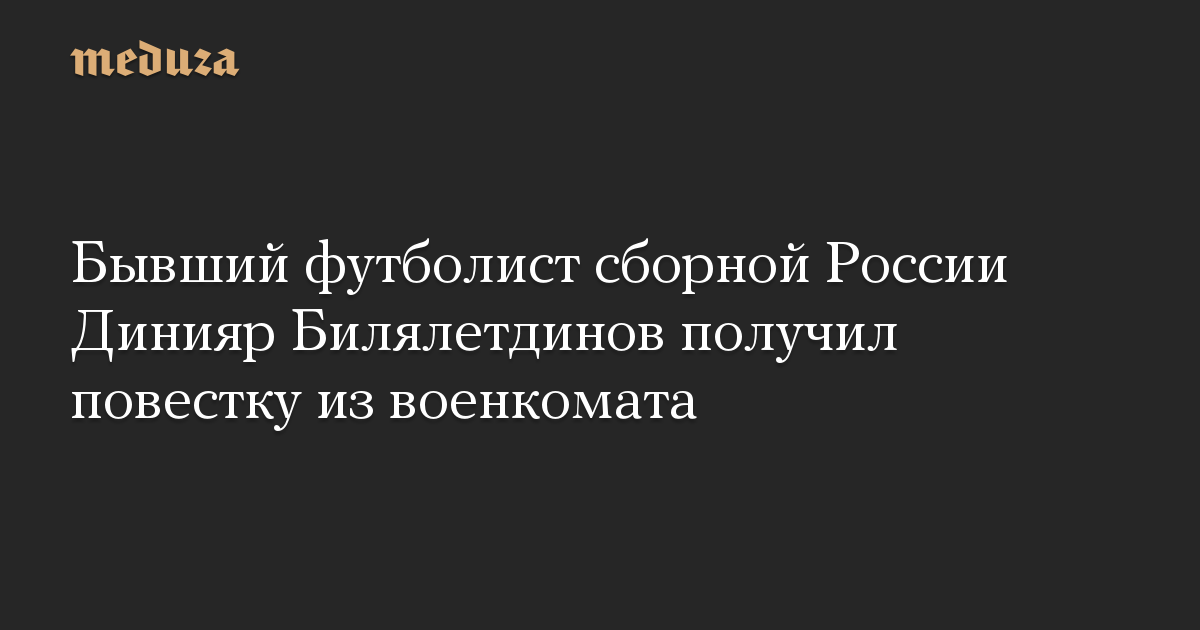 Бывший футболист сборной России Динияр Билялетдинов получил повестку из военкомата