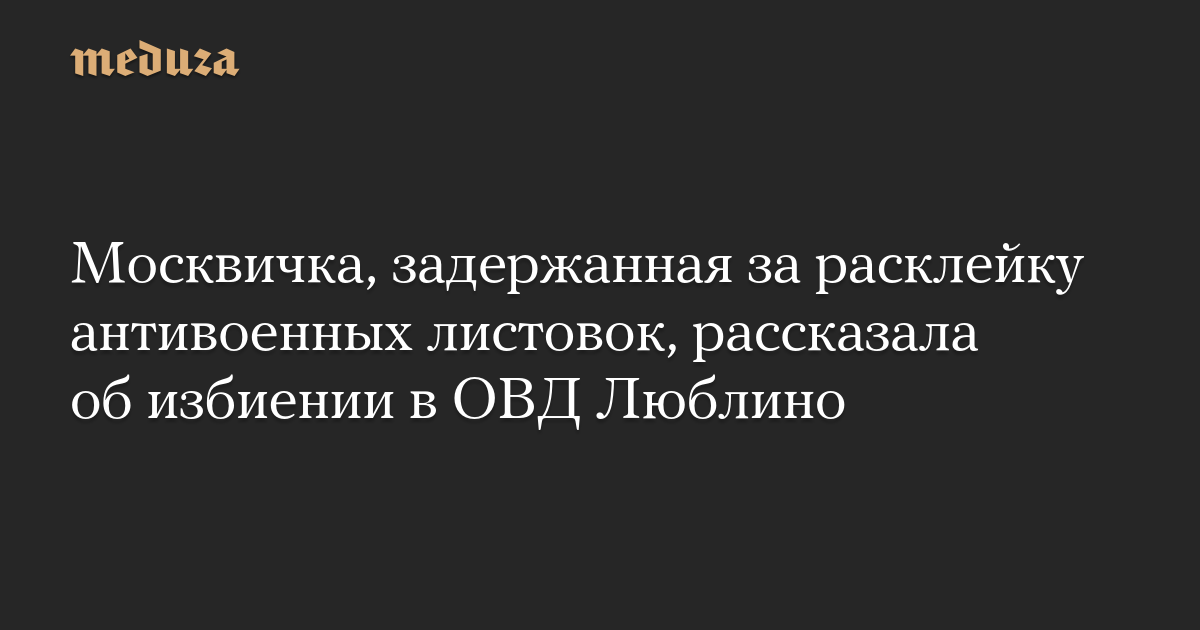 Москвичка, задержанная за расклейку антивоенных листовок, рассказала об избиении в ОВД Люблино