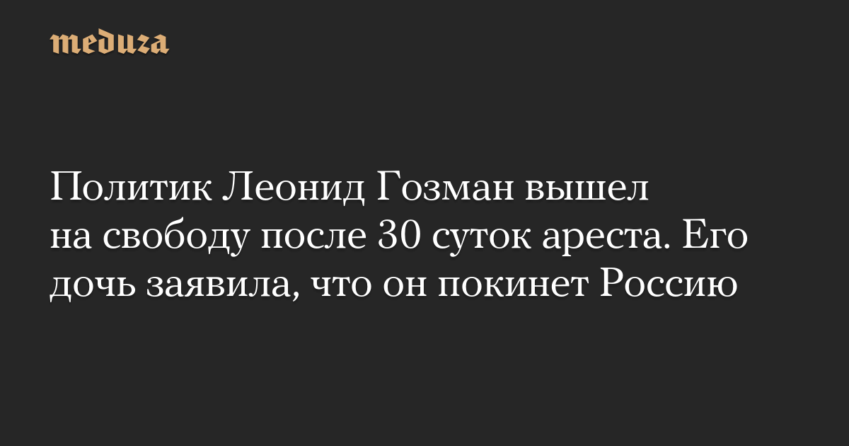 Политик Леонид Гозман вышел на свободу после 30 суток ареста. Его дочь заявила, что он покинет Россию