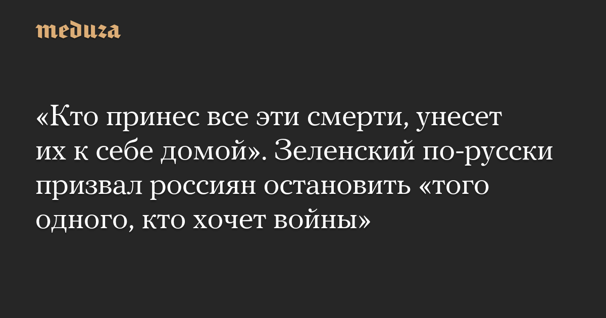 «Кто принес все эти смерти, унесет их к себе домой». Зеленский по-русски призвал россиян остановить «того одного, кто хочет войны»