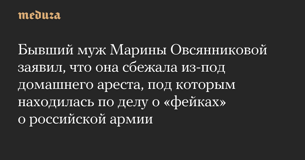 Бывший муж Марины Овсянниковой заявил, что она сбежала из-под домашнего ареста, под которым находилась по делу о «фейках» о российской армии