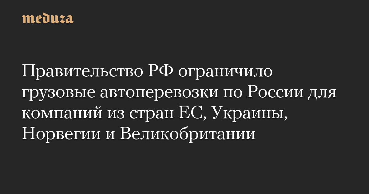 Правительство РФ ограничило грузовые автоперевозки по России для компаний из стран ЕС, Украины, Норвегии и Великобритании