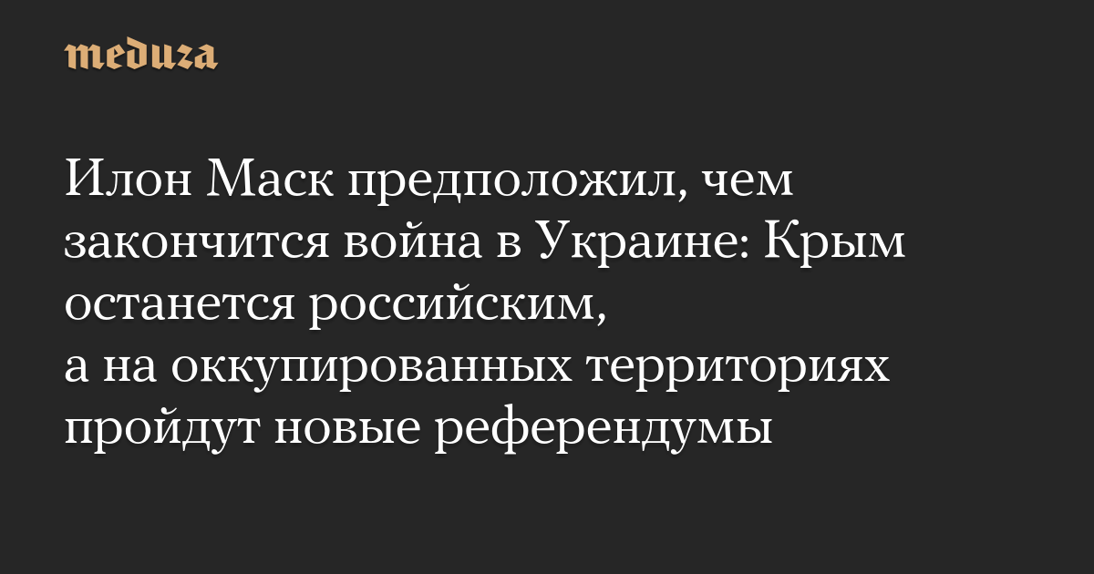 Илон Маск предположил, чем закончится война в Украине: Крым останется российским, а на оккупированных территориях пройдут новые референдумы