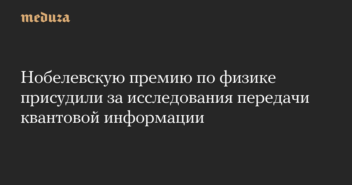 Нобелевскую премию по физике присудили за исследования передачи квантовой информации