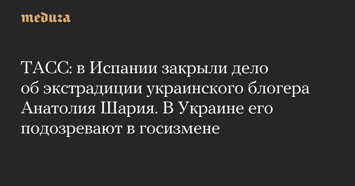 ТАСС: в Испании закрыли дело об экстрадиции украинского блогера Анатолия Шария. В Украине его подозревают в госизмене