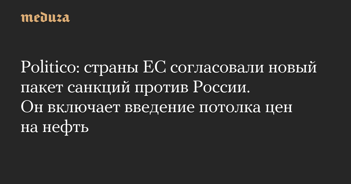 Politico: страны ЕС согласовали новый пакет санкций против России. Он включает введение потолка цен на нефть