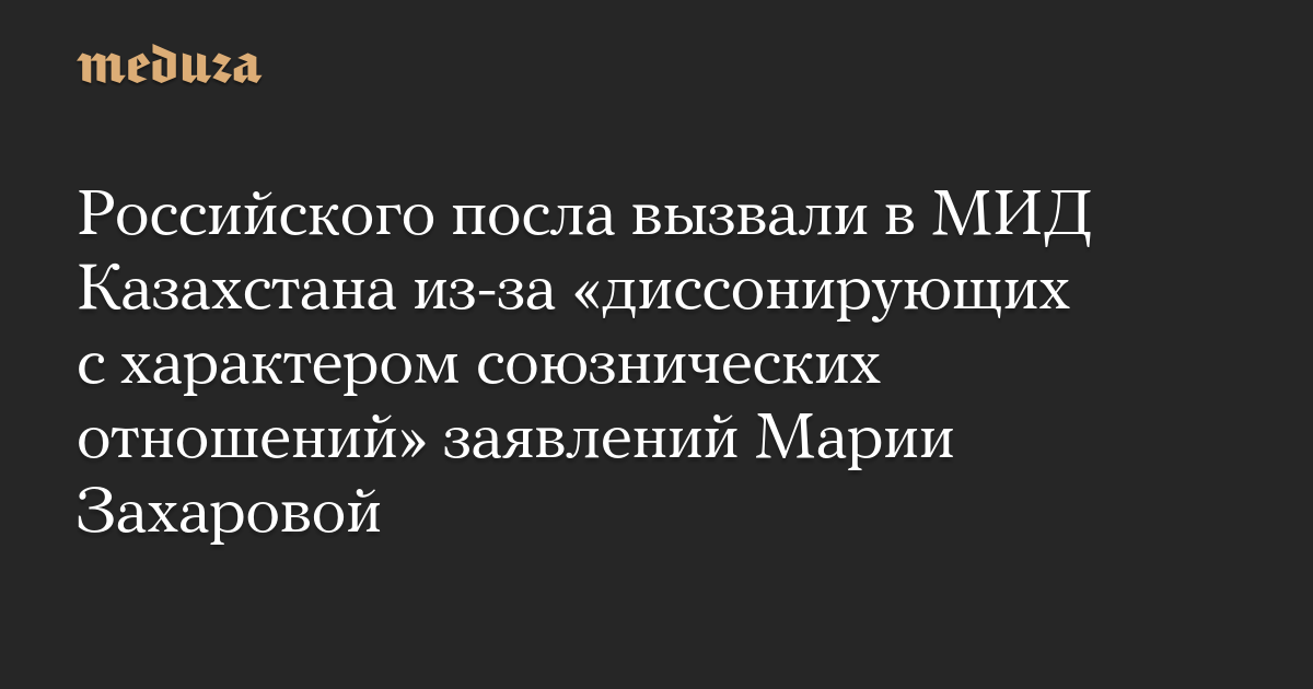 Российского посла вызвали в МИД Казахстана из-за «диссонирующих с характером союзнических отношений» заявлений Марии Захаровой