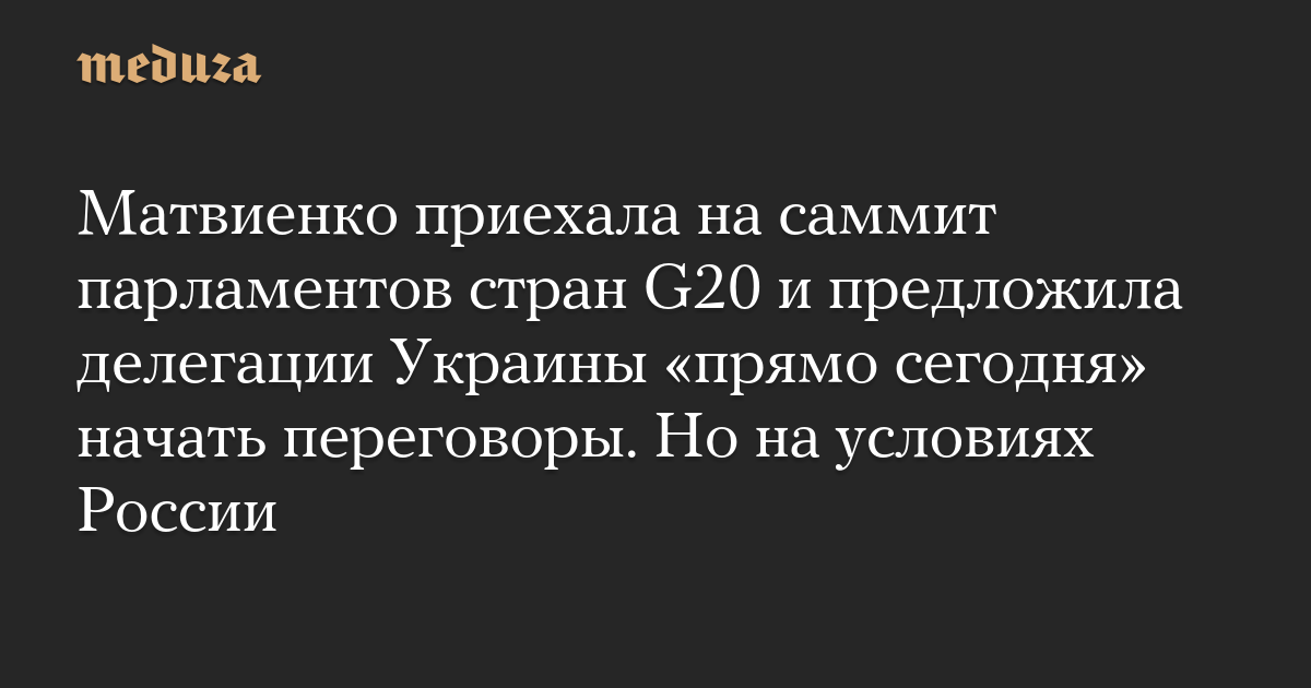 Матвиенко приехала на саммит парламентов стран G20 и предложила делегации Украины «прямо сегодня» начать переговоры. Но на условиях России