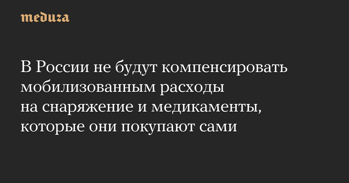 В России не будут компенсировать мобилизованным расходы на снаряжение и медикаменты, которые они покупают сами
