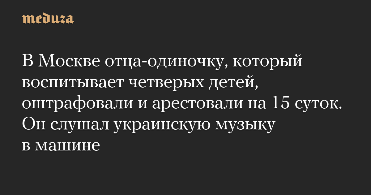 В Москве отца-одиночку, который воспитывает четверых детей, оштрафовали и арестовали на 15 суток. Он слушал украинскую музыку в машине