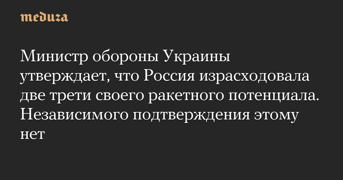 Министр обороны Украины утверждает, что Россия израсходовала две трети своего ракетного потенциала. Независимого подтверждения этому нет