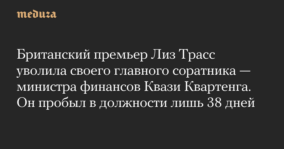 Британский премьер Лиз Трасс уволила своего главного соратника — министра финансов Квази Квартенга. Он пробыл в должности лишь 38 дней